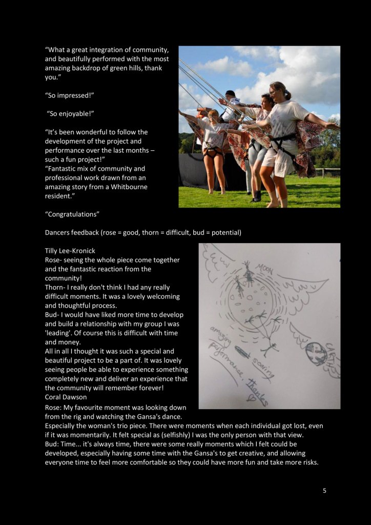 The culmination of 11 months’ work came in the performance on August 31st. The morning saw us set up in torrential rain and leaden skies but, come performance time, the skies cleared, the sun shone – as always happens with EVERYBODY DANCE shows – and the audience watched the spectacle unfold.